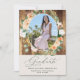 Beautiful Graduation Announcements featuring an elegant modern neutral pastel tone watercolor botanical floral greenery frame in soft earth tones of peach, orange, soft blush, yellows, and lots of shades of green from sage green to bright and deeper greens. Your personalised details are displayed in an elevated typography layout that puts the graduate front and centre.