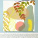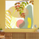 Botanical boho design with magenta, green, yellow, and brown colours and floral elements.