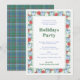 Botanical Border Blue White Red Holidays Party Invitation