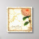 This design features a custom personalised option for wedding and anniversary gifts. This original artwork canvas is from artist and designer Audrey Jeanne Roberts. Entitled "Botanica - Camellia" it is a lovely mix of original artwork and vintage elements. All painted on a crackle finish background with lovely edge treatment of swirls, etched printer's ornaments custom coloured. and other design elements. This is a single piece that is part of a four piece collection that can be purchased either separately (as shown) or as a four-piece vignette. DESIGNS: A Coral peach camellia combines with an hand painted leaf swirl, antique text, vintage postmarks, postcards, and handwriting. The bride and groom can have their names and wedding date added via the easy to use template.