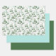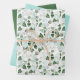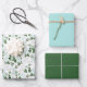 These sheets have one sheet with a modern watercolor of heart-shaped leaves in eucalyptus colours. The other two sheets have solid colours which are in the art. The colours are summery green, turquoise, teal and dark green. Botanical Celebration Green Wrapping Paper Sheets.