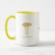 A Mug with a Botanical Chanterelle Mushroom (Cantharellus cibarius) in pastel tones and a customisable text. It could be used as a gift for a birthday to persons who love nature, a mycologist or a fungi fan!