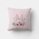 Botanical chic pink watercolor floral monogram cushion
