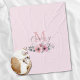 Botanical chic pink watercolor floral monogram fleece blanket