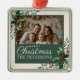 Celebrate the joy of the season with this Botanical Cream Christmas Ornament, beautifully designed with watercolor holly leaves, red berries, and your custom photo.