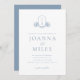 Botanical Crest Dusty Blue Monogram Invitation