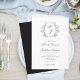 A simply classic black white wedding invitation features a botanical line art crest with your monogram. Personalise with all the important details such as your names, wedding date, time and venue location. The reverse side is coordinated in black