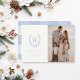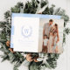 Botanical Crest Monogram Blue Christmas Photo Holiday Card