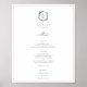 Botanical Crest monogram, wedding menu poster. Vintage inspired crest adorned with botanical branches. Features, elegant and classy black typography.