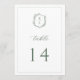 Botanical Crest monogram, wedding table number. Vintage inspired crest adorned with botanical branches. Features, elegant sage green typography design style mix of script and bold type. Please note that table number cards must be ordered individually.