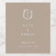 Botanical Crest monogram, wedding bottle label. Vintage inspired crest adorned with botanical branches. Features, white typography on sparkling wine beige background.