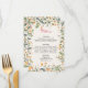 Botanical Daffodils Daisy Peony Flowers Wedding Menu