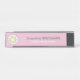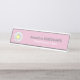A pink desk name plate with a botanical daisy flower illustration in pastel colours (Leucanthemum vulgare) for employee company with name and job or service. These nameplates will bring a floral touch to offices!