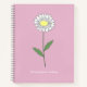 A pink notebook for school or work with a botanical daisy flower illustration in pastel colours (Leucanthemum vulgare) and customisable texts: perfect gift idea for a girl who love flowers.