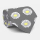 A grey neck tie with a pattern of botanical daisy flower illustration in pastel colours (Leucanthemum vulgare): a perfect gift for a lover of flowers. Daisy is the April birth flower and is symbolic meanings of kindness, purity, innocence, joy and cheerfulness.