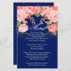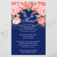 Botanical Dark Blue and Coral Flower Wedding Menu