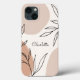 This modern phone case features earth tone splashes with simple botanical line art and your name in pretty script typography.