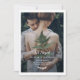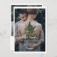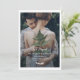 This minimalist, elegant wedding elopement announcement features two of your photos, with a simple botanical and text overlay in white on the front, and room for your additional message on the back. The front also says "we eloped" in handwritten script.