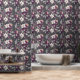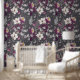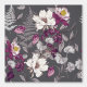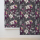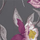 This artwork showcases a sophisticated floral pattern featuring intricately detailed flowers and foliage in rich shades of cream, plum, and grey. Set against a dark charcoal background, the delicate illustrations of ferns, leaves, and blossoms create a striking contrast, highlighting the beauty of each element. The design combines classic botanical motifs with a modern colour palette, resulting in a timeless and elegant composition that exudes a sense of refined beauty.