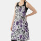 Botanical elements, leaves and flowers, watercolor art in purple.