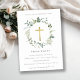 Botanical Eucalyptus Gold Cross Wreath Baptism Invitation