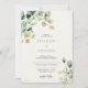 The invitation features delicate watercolor illustrations of eucalyptus greenery, creating a soft, natural, and inviting aesthetic. The various shades of green and subtle textures bring a touch of the outdoors to your announcement. Adding a hint of refined luxury are elegant gold accents, perhaps in the typography or delicate speckles, providing a subtle shimmer and a touch of glamour.