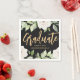 Beautiful pastel floral with watercolor greenery graduation party napkins includes pretty gold colour script lettering and the graduate's name and class year on an elegant black background. Shop this store for coordinating 2024 graduation party items and additional colour options!
