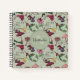 This Botanical Floral Hummingbird Pattern Sage Green Notebook custom hardcover notebook features a hummingbird and floral pattern with hand-drawn exotic flowers, birds, and foliage on the front and back covers, all on an elegant sage green background. Personalise with your monogram and name for a unique touch. Available with blank, wide-ruled, or college-ruled pages and your choice of spiral colour.