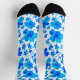 Socks in a watercolor-style floral pattern with flowers in shades of deep blue on a white background. Large, detailed blossoms alongside smaller, simpler flowers and delicate branching stems, for an airy, botanical feel.