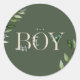 Botanical Floral Lettering Green Beige Boy Baby Classic Round Sticker