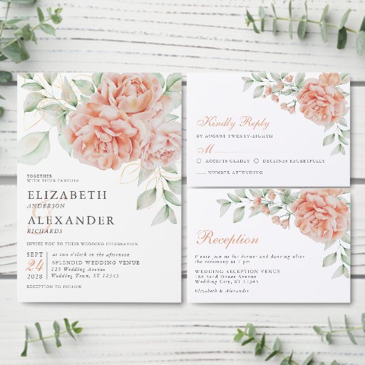 This beautiful elegant wedding RSVP card features a botanical watercolor pink floral bouquet with soft greenery. On the back is a soft pink watercolor texture. Check out the collection for the rest of the wedding invitation suite and more matching products. If you would like additional products or other colorways, please contact me through Zazzle Chat.