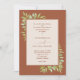 Elegant watercolor green botanical foliage frames your wedding details on these terracotta wedding invitations with your ceremony information in chic lettering on an ivory background. MATCHING items in our store.