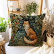 This exquisite pillow features a whimsical design that brings a delightful fox amidst a lush forest to life, surrounded by intricate botanical leaves and delicate art nouveau-style florals.