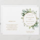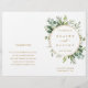 This wedding ceremony program features painted watercolor eucalyptus greenery, green leaves and a gold circular frame. For more advanced customisation of this design, Please click the "Customise further" link. Matching items are also available. NOTE: You will need to fold them in half when they arrive.