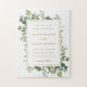 This wedding invitation jigsaw puzzle features painted watercolor eucalyptus greenery, green leaves and a gold rectangular frame. For more advanced customization of this design, Please click the "Customize further" link. Matching items are also available.