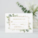 This wedding RSVP card features painted watercolor eucalyptus greenery, green leaves and a gold rectangular frame. For more advanced customisation of this design, Please click the "Customise further" link. Matching items are also available