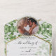 All in one Modern and Elegant Wedding invitation with a custom photo of the couple. A special invitation that makes the process of inviting people much easier. the invitation is fully customisable depending on your needs and preferences and it comes with a floral, flowery, bouquet, and botanical and greenery accent. We do also offer a variety of other all-in-one invitation for your wedding in our store that comes in glitter, foliage, diamonds, confetti and flowers of all types, gold decorated, and much more.