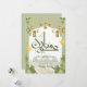 Celebrate the end of Ramadan with this nature-inspired card featuring lush green leaves, hanging gold lanterns, and a beautiful illustration of the Holy Quran.