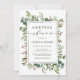 This couples shower invitation features painted watercolor eucalyptus, green leaves, red berries, pine branches, and a green rectangle frame with stylish calligraphy. For more advanced customisation of this design, please click the "Customise further" link. Matching items are also available.