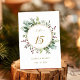 This wedding table number card features painted watercolor eucalyptus, green leaves, red berries, pine branches, and a faux gold circle frame. For more advanced customisation of this design, please click the "Customise further" link. Matching items are also available.