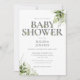 An elegant baby shower invitation featuring elegant chic typography and pretty botanical greenery foliage. Designed by Thisisnotme©