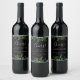 Modern watercolor botanical greenery frame, personalised bottle label. Labels feature classic black colour background and multiple template text lines for message, names and date.