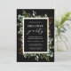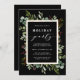 This holiday party invitation features painted watercolor red berries, pine branches, eucalyptus, green leaves with a faux gold rectangle frame, and a QR code on the back. For more advanced customization of this design, please click the BLUE DESIGN TOOL BUTTON to change the font, size, color, etc.