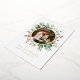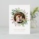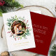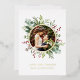 This photo thank you card features painted watercolor eucalyptus, green leaves, red berries, pine branches, and a gold foil circle frame with optional text on the back. For more advanced customisation of this design, please click the BLUE DESIGN TOOL BUTTON.