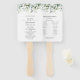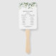 Customisable wedding program fan, featuring forest green botanical leaves on a white background.