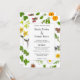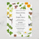 This elegant and modern invitation is ideal for a wedding with an organic or outdoors theme. It features pictures of herbs, flowers, seeds and plants on a white background. Clean design with punches of colour ideal for a modern couple with a taste for natural things.