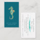 Watercolor botanical island flowers and foliage seahorse shape with blue ocean wave accent, ocean depths blue business cards. Text font style, colour and size, can be customised.