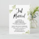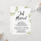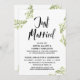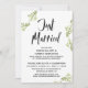 Here's a fresh choice for your post-wedding celebration needs. Over an editable white background, I've placed a typography graphic that reads "Just Married", featuring an elegant, modern script font in black. Surrounding this header and the body text are 3 separate watercolor botanical sprays that dance and curve around the borders. Those same graphics were placed on the back in enlarged format. Use the template fields to add your own details and click to customise further if you'd like to make any additional modifications. All layers are unlocked to allow for all the positioning and sizing control you desire.