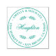 Easily personalise these custom Botanical Leaves Round Wedding Return Address self-inking rubber stamps with your own names and address. To customise these rubber stamps, click on "Personalise this template" and change the text in the boxes provided. Available in 9 different colours and 6 sizes. Please view your design on the monitor as close to actual size as possible to ensure that the text prints at the expected size. For use as a return address stamp most people will require a larger size than this. These return address self-inking rubber stamps stamp up to 10000 impressions with each cartridge, have a soft touch for secure grip and ink-free fingers and an eco-friendly manufacturing process. No minimum order quantity.