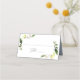 Elegant watercolor botanical lemons, leaves and blossom frame, wedding place cards.